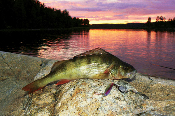 В спокойные светлые ночи рыба довольно активно кормится и без опаски подходит к урезу воды под самый берег. Объясняется такое бесстрашие не столько светлыми ночами, сколько тем, что обитатели глубин давно переболели после икрометания (те рыбы, которые нерестятся весной), вода теперь прогрелась, и рыбы с жадностью «нагуливают жирок». В сумерках мелководья вдруг оживают от громких всплесков, и над водой тут и там возникают горбатые спины лещей, осмелевших язей и щурят. Именно сейчас забросы под самый берег или на полуметровую отмель принесут частые поклевки привередливой «рыбной элиты». К ночи уверенней становятся поклевки также вблизи мостков и плотин, возле заякоренной лодки в зарослях прибрежной травы, около отбойных струй под перекатом, где постоянно крутится рыба. Течением под перекат сносит погибших мальков, до которых хищники большие охотники. Как правило, подводные охотники контролируют мелководные впадины, откуда то и дело выплескиваются на свободу новорожденные головастики, которые тут же становятся добычей голодных хищников. При появлении рыбьей молоди они также без стеснения бороздят мелководное прибрежье. Поэтому в таких местах хищники неплохо ловятся спиннингом на мелкие и средние вращающиеся и колеблющиеся блесны типа «Кеми» и окуневые грушевидной формы, лучше латунные или медные. Грузило обычно не ставится, а тройнички № 5-6 маскируются красной опушкой. Леска предпочтительнее диаметром 0,25-0,35 мм. Мелкий стример, пущенный плавом с кратковременными потяжками, зачастую приносит хватки солидных рыб. При ловле спиннингом светлыми ночами можно стать обладателем солидной щучки, жереха, судачка, крупного язя или окуня.