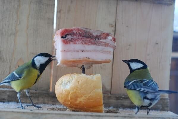 Сало нужно давать совсем чуть-чуть (сало несоленое) , так как живущей в тепле синице много его не нужно. Вареные яйца даются в смеси с тертыми овощами, в чистом виде они слишком калорийны для птицы и вредны для ее печени.