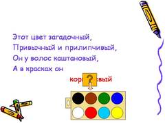 Слайд 11 Этот цвет загадочный, Привычный и прилипчивый, Он у волос каштановый, А в красках он коричневый