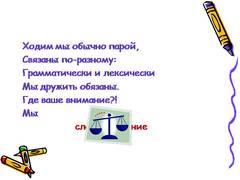 Слайд 5 Ходим мы обычно парой, Связаны по-разному: Грамматически и лексически Мы дружить обязаны. Где ваше внимание?! Мы словосочетание
