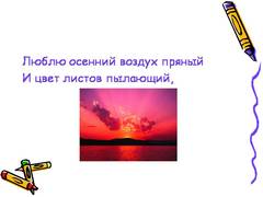Слайд 15 Люблю осенний воздух пряный И цвет листов пылающий, багряный