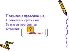 Слайд 10 Прочитал я предложение, Прочитал и сразу скис: За его за построенье Отвечает синтаксис