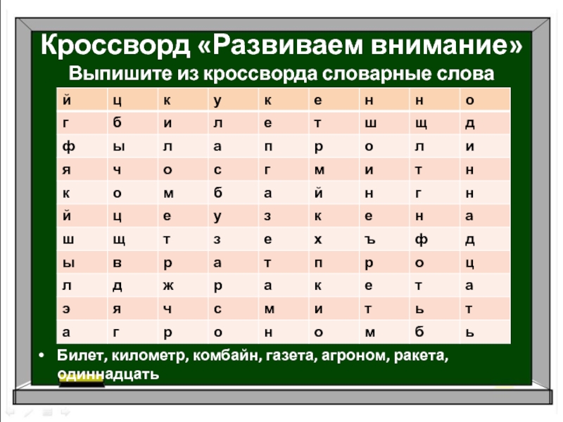 Кроссворд «Развиваем внимание» Выпишите из кроссворда словарные слова