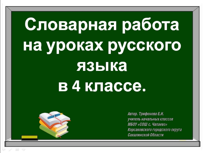 Презентация на тему Презентация на тему Словарная работа на уроках русского языка в 4 классе презентация к уроку по русскому языку (4 класс), предмет презентации: Русский язык. Этот материал содержит 29 слайдов. Красочные слайды и илюстрации помогут Вам заинтересовать свою аудиторию. Для просмотра воспользуйтесь проигрывателем, если материал оказался полезным для Вас - поделитесь им с друзьями с помощью социальных кнопок и добавьте наш сайт презентаций ThePresentation.ru в закладки!