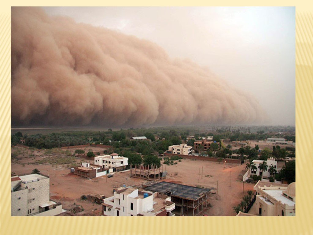 Если вас застигнет пыльная или песчаная буря, желательно закрывать лицо, чтобы мелкие частицы не попадали в дыхательные пути. Такой ветер затрудняет дыхание и вызывает раздражение открытых участков кожи.