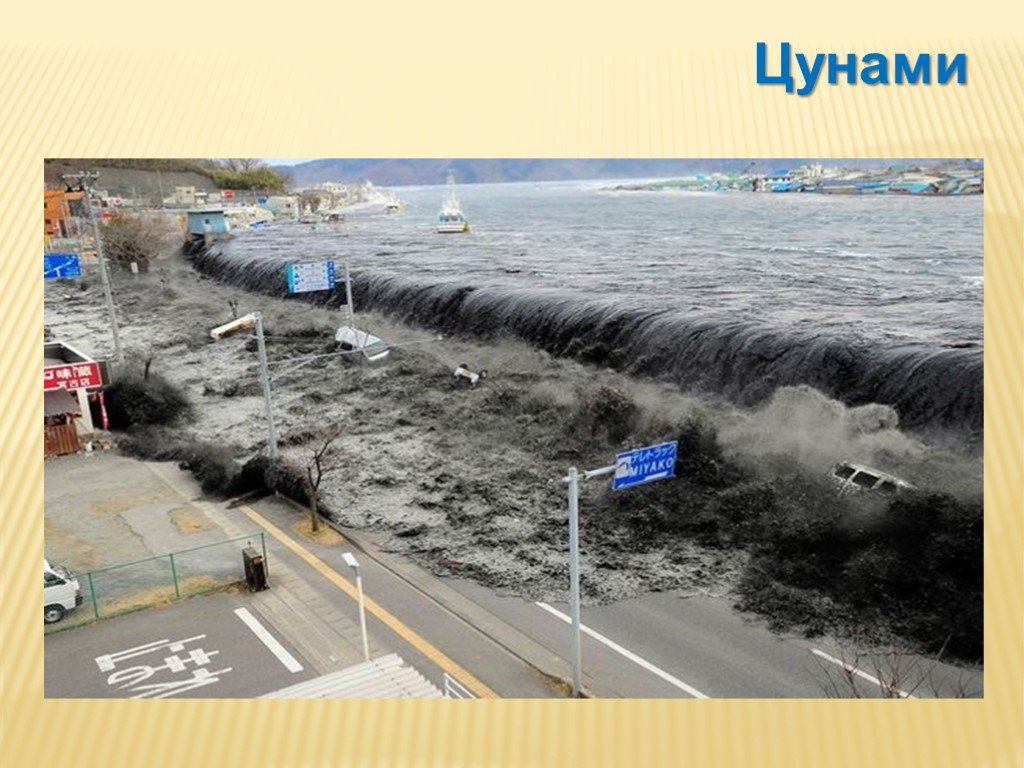 Цунами – морские волны, вызванные смещениями участков дна океана при землетрясениях, оползнях и извержениях вулканов. Особо опасны вблизи берегов, где набирают максимальную высоту.