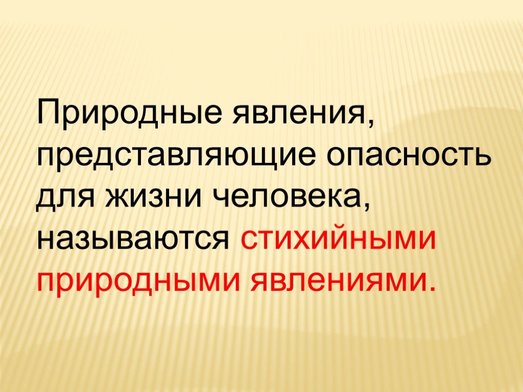 Природные явления, представляющие опасность для жизни человека, называются стихийными природными явлениями.