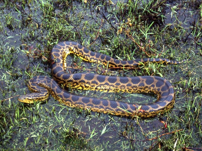 Анаконда — крупнейшая современная змея. Её средняя длина — 5—6 метров, а нередко встречаются экземпляры по 8—9 метров. Уникальная по размерам достоверно измеренная особь имела в длину 11,43 м (этот экземпляр, однако, сохранить не удалось).