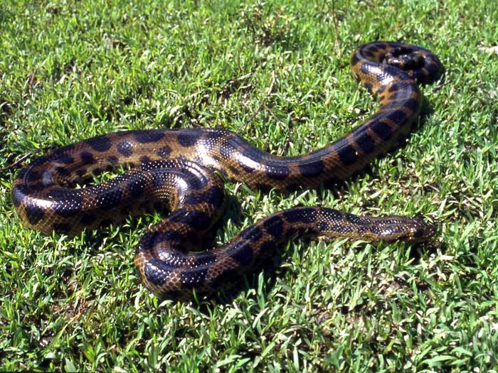 Анаконда самая крупная змея, причем по длине она уступает сетчатому питону, но по весу она является самой большой. Интересно отметить, что самки этих змей крупнее самцов. Максимальная замеренная длина анаконды составила 5,4 метра, при весе 100 кг. Но в природе вероятно существуют особи немного крупнее. По предположениям специалистов анаконды могут достигать длины 6,7 метров и веса 130 кг.