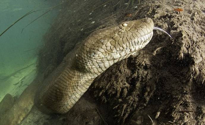 Всю фотосессию анаконда лишь лениво косилась на 53-летнего дайвера и, по словам последнего, он легко мог коснуться ее рукой, но все-таки не стал этого делать.