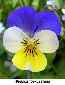 В другом цветке и всего-то пять лепестков, но все они окрашены в разные цвета. Фиалка трехцветная - сорняк на огороде, а как причудливо раскрашен ее венчик! Два верхних лепестка глубокого бархатного темно-фиолетового цвета, два боковых - голубенькие, а нижний лепесток белый. Да к тому же в глубине лепестков желтое кольцо, а в центре его помещается пуговка из оранжевых тычинок. Как тут не заметить маленькую фиалочку! У вики и многих ее родственников каждый из пяти лепестков тоже окрашен по-разному и каждый отличается по форме от других.