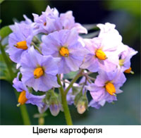 Рассмотрите внимательно цветок картофеля. Он очень изящен по форме и красив по сочетанию оттенков: на фиолетовой звезде лепестков вырисовывается гофрированный желтый конус тычинок.