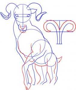Учимся рисовать и узнаем в этом уроке как нарисовать знак зодиака Овен. Хорошо, начнем этот пошаговый учебник, растягивая руководящие принципы и формы барана и символа. Во-первых нарисовать идеальный круг для формы головы, а затем добавить руководящие принципы для лица, как и загнутые линии для своих рогов.