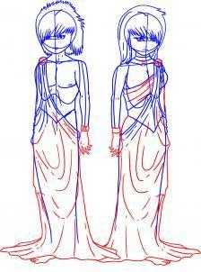Сначала рисуем очертания двух фигур (одна будет мужская, другая женская):