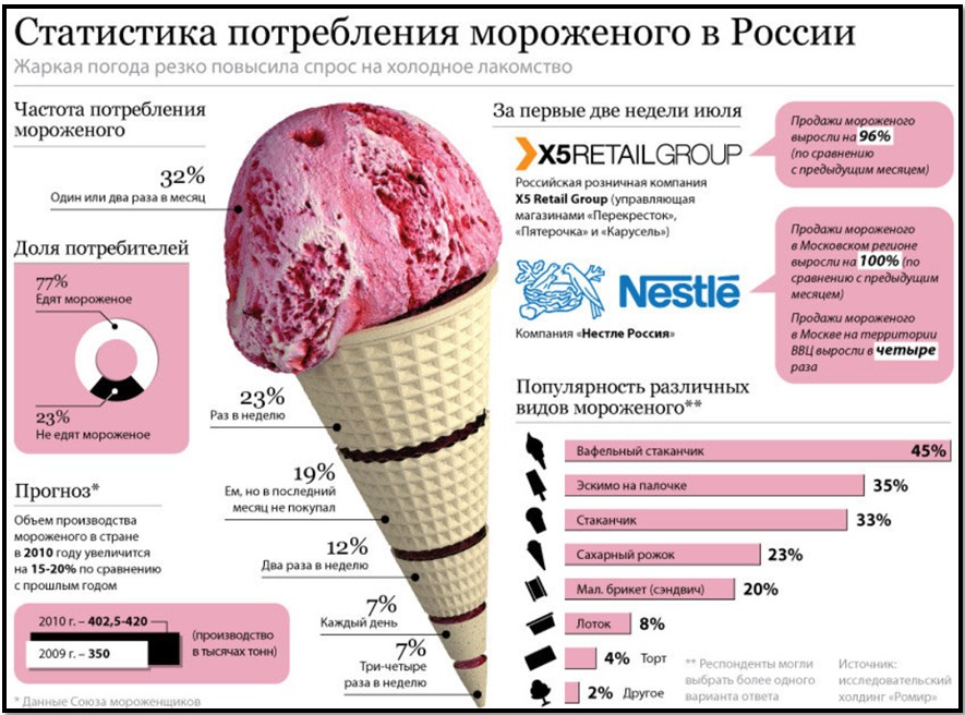 Вообще, статистика потребления этого лакомства в летний период, выглядит следующим образом.