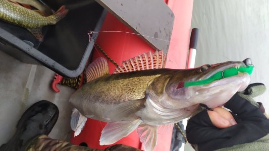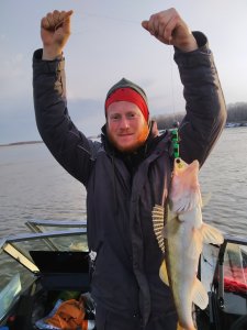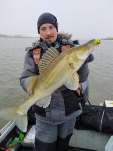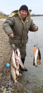 Судак брал на зелёный поролон, а щучка попалась на песках на резину вместе с окунем.