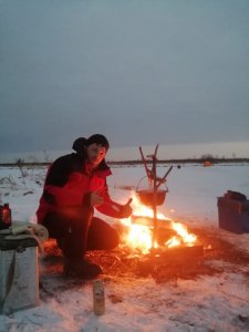 На вечер у нас была жаренная рыба на скоровородке в масле. Какая она была вкусная и нежная просто не описать, судак просто таял во рту. Спали в машине разложив сиденья, я в спальнике, а Саша под теплым одеялом. И на удивление не замёрзли при том, что не прогревали машину.