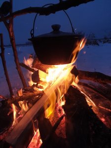 Конечно, огорчились, но ничто так быстро не улучшает настроение, как вкусный ужин в красивом месте и в приятной компании: на ночном берегу, под стрекочущую песню костра, пожарили картошечки, приправили ее малосольными огурчиками, ароматнейшим сальцом, домашнего копчения – и сытые и довольные, отправились на боковую. Сначала, правда, сверились с завтрашним прогнозом погоды, чтобы распланировать день – прогноз, увы, подводил: ожидался сильный дождь и гроза, с порывами ветра до 23 м/с. Вот так подгадываешь денечки, откладываешь все дела, выбираешься на природу, а она, подруга, не в настроении – диктует свои суровые условия, под которые, хочешь-не хочешь, а подстраиваться приходится.