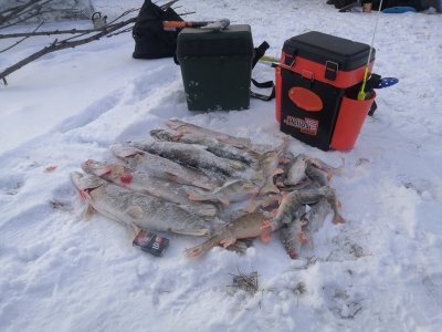 Я первый день почти не блеснил и отловился сначала в достаточно хорошем количестве по живцу и потом еще поставил свои жерлицы под вечер, когда клев немного подзатих. На жерлицы в общем счете было поймано порядка 5 щук, на балансиры пара щук и окуни, на мормышку огромное количсетво живцового окуня и чебака.
