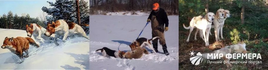 Красивая псовая охота на лису с гончими и борзыми одновременно раньше была популярным способом добычи зверя. Этот вид ловли особенно приемлем там, где есть возможность выгнать лису гончими из леса на открытое пространство и дать поработать с ней стремительным борзым. В лесостепной местности захватывающая охота на лису с собаками хороша поздней осенью по чернотропу и по первому снежку. В более суровых погодных условиях с сильными морозами, обильным снегом и настом, собак лучше поберечь.