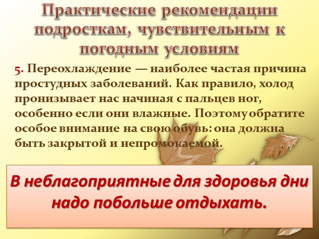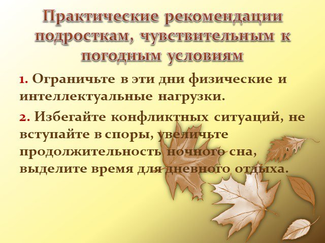 Практические рекомендации подросткам, чувствительным к погодным условиям