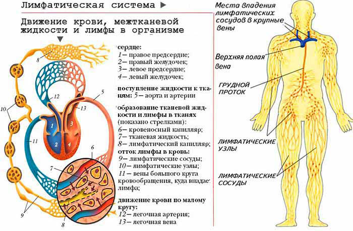 Основная функция лимфатической системы - это всасывание из тканей воды, коллоидных растворов белковых веществ, эмульсий жировых веществ, инородных частиц и бактерий. Она состоит из густой сети лимфатических сосудов и лимфатических узлов. Общее количество лимфатическиx сосудов во много раз превышает количество кровеносных сосудов. Они образуют два лимфатических ствола, которые впадают в крупные вены около сердца.
