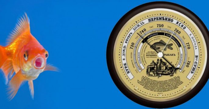 Вспомним, что давление по сути это вес воздуха, а на рыбу давит еще и столб воды. Так вот при повышении воздушного веса на плавательный рыбий пузырь сумма давлений увеличивается. Поэтому, чтобы это компенсировать, пузырь наполняется газом и рыба поднимается в верхние слои, при обратном процессе – опускается на дно.