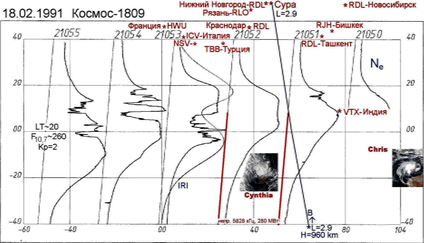 Искусственный разогрев ионосферы посредством ионосферных радиолокационных станций типа «Сура» (Россия) или «ХААРП» (США) способны вызывать точно такую же реакцию Земли в форме землетрясений, образования локальных свечений в ионосферном слое, устранение ранее возникших смерчей и ураганов или формирование их в других местах. Пример подобного воздействияна рис.9.