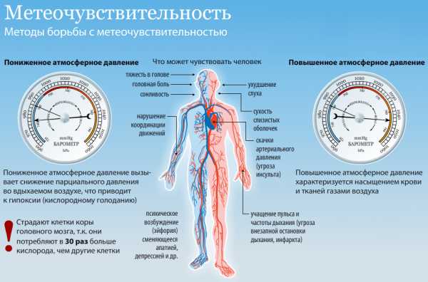 Если на здоровых людях перепады атмосферного давления не отражаются, то у людей с хроническими заболеваниями имеется повышенная метеоролическая чувствительность.