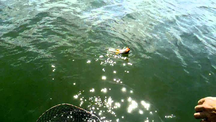 В теплые, солнечные дни июля, достаточно часто окунь клюет, как на искусственную наживку (блесну), так и на живца, в качестве которого используются небольшие карасики либо карпики.