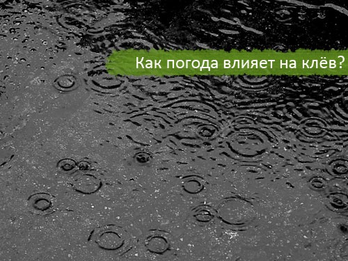 В жаркую безоблачную и безветренную погоду клев большинства рыб днем совершенно отсутствует и появляется лишь на рассвете и в сумерки; перед грозой он кратковременный, во время грозы прерывается и снова возобновляется после нее, если ливневые потоки не сильно взмутили воду в прибрежной зоне водоема. В период затяжных дождей слабый клев рыб возможен, как правило, во время перерывов в выпадании осадков, если одновременно прекращается или ослабевает ветер.