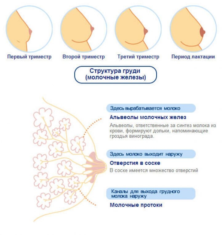 Мягкая ткань женской груди состоит из маленьких пузырьков. По-научному они называются альвеолами. В совокупности они образуют млечные дольки, которые разделяются друг от друга соединительной или жировой тканью. Получить молочко грудничок может через сосок, окруженный ареолой. Появляется продукт именно в пузырьках. Под влиянием гормонов вещества из крови превращаются в молоко.
