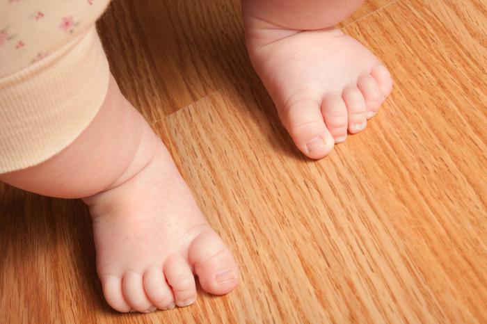 Проверить, есть ли гипертонус ног у младенцев, можно следующим образом. Во время бодрствования кроху необходимо взять под мышки и, поставив его на ровную поверхность, немного наклонить вперед. В первый месяц у малышей сохраняется врожденный рефлекс шагания - они начинают перебирать ножками, как при ходьбе. При этом здоровые малыши ставят ногу на ровную стопу, а детки с гипертонусом опираются на пальчики. Это является важным диагностическим признаком, по которому определяют нарушения функционирования ЦНС у новорожденных крох.