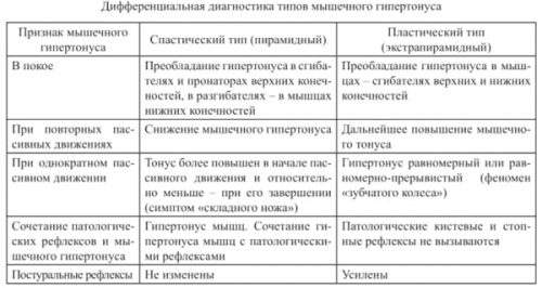 В неврологии принято различать два типа мышечного гипертонуса: спастический (пирамидный) и пластический (экстрапирамидный).