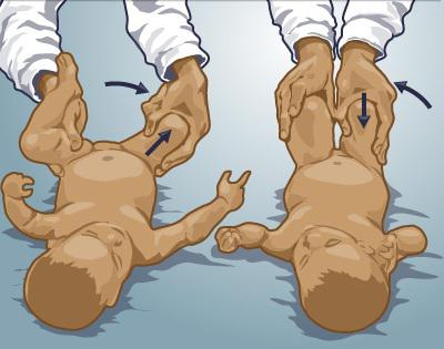 Можно проверить также тонический рефлекс. В положении на спине конечности ребенка находятся в разогнутом состоянии, а в положении на животе руки и ноги подгибаются под туловище. В случае гипертонуса руки и ноги будут сгибаться в любом положении малыша.