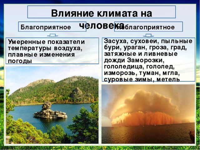 Одним из них является климат, именно он оказывает огромное воздействие на человеческий организм.