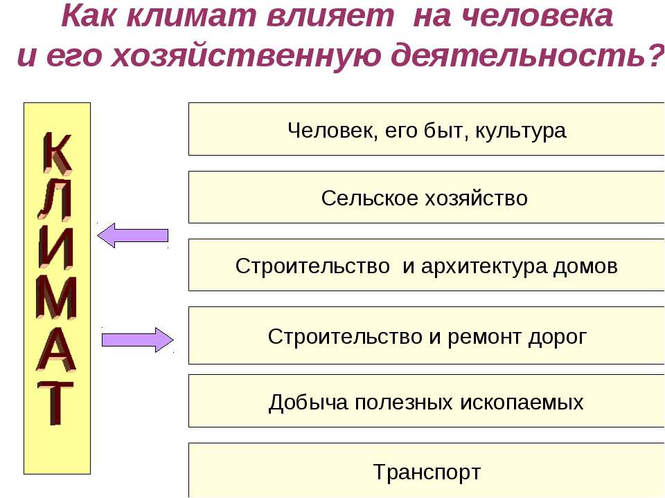 Какое влияние оказывает климат на здоровье человека на его хозяйственную деятельность?