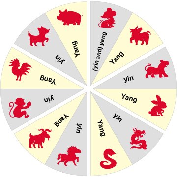 В Древнем Китае Каждое зодиакальное животное было наделено определённым символическим значением - признаком. 12 животных были поделены на 6 пар таким образом, чтобы признаки одного животного в паре были противоположными признакам другого животного из этой пары. Так была достигнута гармония - Инь и Янь.