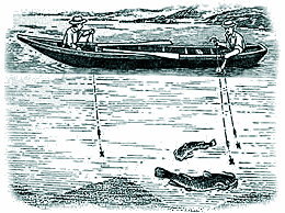 На этой слабости сомов к лягушкам построен самый добычливый метод их ловли, заключающийся в приманивании крупных особей звуком, похожим на кваканье, который рыболовы издают специальным приспособлением – квоком , хлопая им по воде.