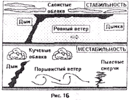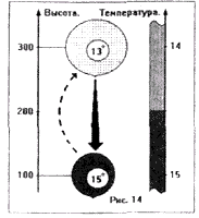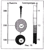 Стабильность. Представим себе слой атмосферы, в котором вертикальное убывание температуры меньше, чем 1 градус на 100 метров. Пусть на высоте 100 метров температура воздуха равна 15 С, а на высоте 300 метров - 14 С.