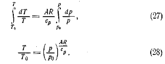 Закон, по которому происходят адиабатические изменения состояния в идеальном газе, с достаточной точностью применим к сухому воздуху, а также к ненасыщенному влажному воздуху. Этот сухоадиабатический закон выражается уравнением сухоадиабатического процесса, или так называемым уравнением Пуассона. Показатель AR/cp равен 0,288. Для влажного ненасыщенного воздуха вместо температуры Т следует брать виртуальную температуру Тv.