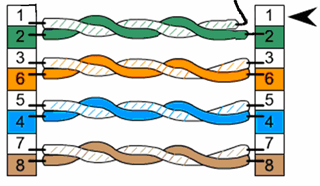 Если оранжевая и зеленая пары в порядке, и Вы не хотите возиться с обжимом коннекторов, нужно проверить отрезанные куски кабеля с коннекторами. Для этого скручиваются вместе зачищенные от изоляции все цветные провода витых пар и отдельно белоцветные.