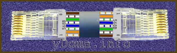 На фотографии изображен кабель витых пар обжатый в коннекторе RJ-45 по варианту В цветовой маркировки.