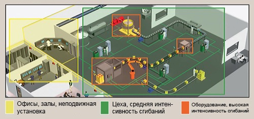 В типичной офисной обстановке оборудование сети Ethernet инсталлируется в относительно чистой, спокойной среде, где кабели прячутся в кабель каналах, на стенах, в потолках или под полами, а сетевое оборудование, активное и пассивное, размещается в закрытых шкафах или помещениях. В цеху все совсем по-другому. Большинство кабелей и разъемов промышленной сети входят в состав АСУТП, находятся под воздействием различных производственных опасных факторов. Даже лучшие офисные Ethernet сети не смогут работать в такой обстановке, особенно, продолжительное время. Сложные условия эксплуатации требуют более износостойких кабелей.