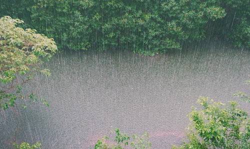 И вот с неба падают первые крупные капли. Не желая намокнуть, бродячие собаки и кошки спешно забегают под укрытия. Люди спасаются под навесом зданий и остановок. Вскоре дождь усиливается, превращаясь в ливень. Он хлещет во всю мощь, громко отбивая на асфальте барабанную дробь. Ему вторит резко меняющий направление порывистый ветер. Вдруг раздаётся громкий треск, и под напором стихии с дерева падает большая зелёная ветка. Всё живое в округе невольно вздрагивает.
