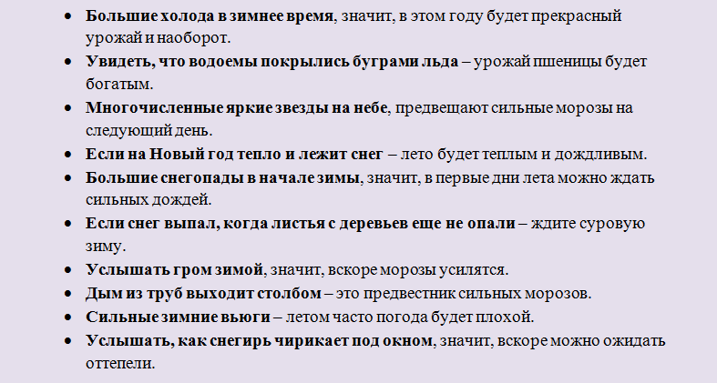 В этой статье описаны народные зимние приметы на урожай, весну, лето.