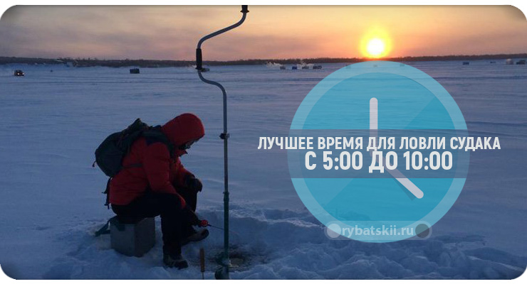 Опытные рыболовы говорят, что в течение дня есть промежутки времени – «выходы», когда наблюдается наивысшая активность и порой даже жор судака. В такие моменты можно легко выловить пару рыбин буквально за полчаса-час. Обычно хороший клёв зимой наблюдается утром с 5:00 до 10:00, а также вечером, когда начинает темнеть.