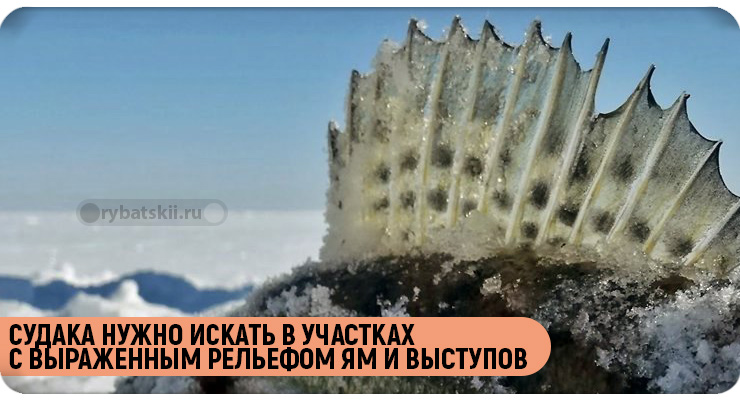 При февральской ловле судка важно учесть то, что он изменяет свою глубину на 2-4 метра на восходе солнца, и находится на глубине примерно 5-8 метров в середине дня. С наступлением заката картина меняется в обратную сторону.