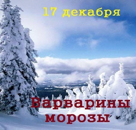 Этот праздник в народе также получил название Варварины морозы. Считают, что в этот зимний день приходят первые крепкие морозы.